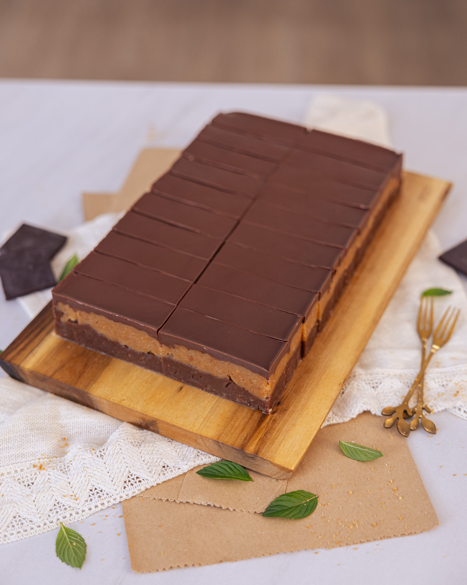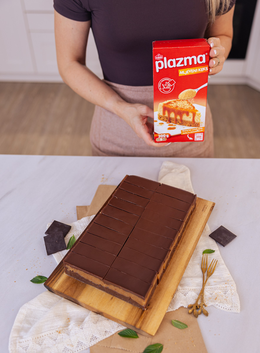 Postavimo v hladilnik, da se dobro ohladi in strdi. Nato narežemo na kocke ali pravokotnike in postrežemo.